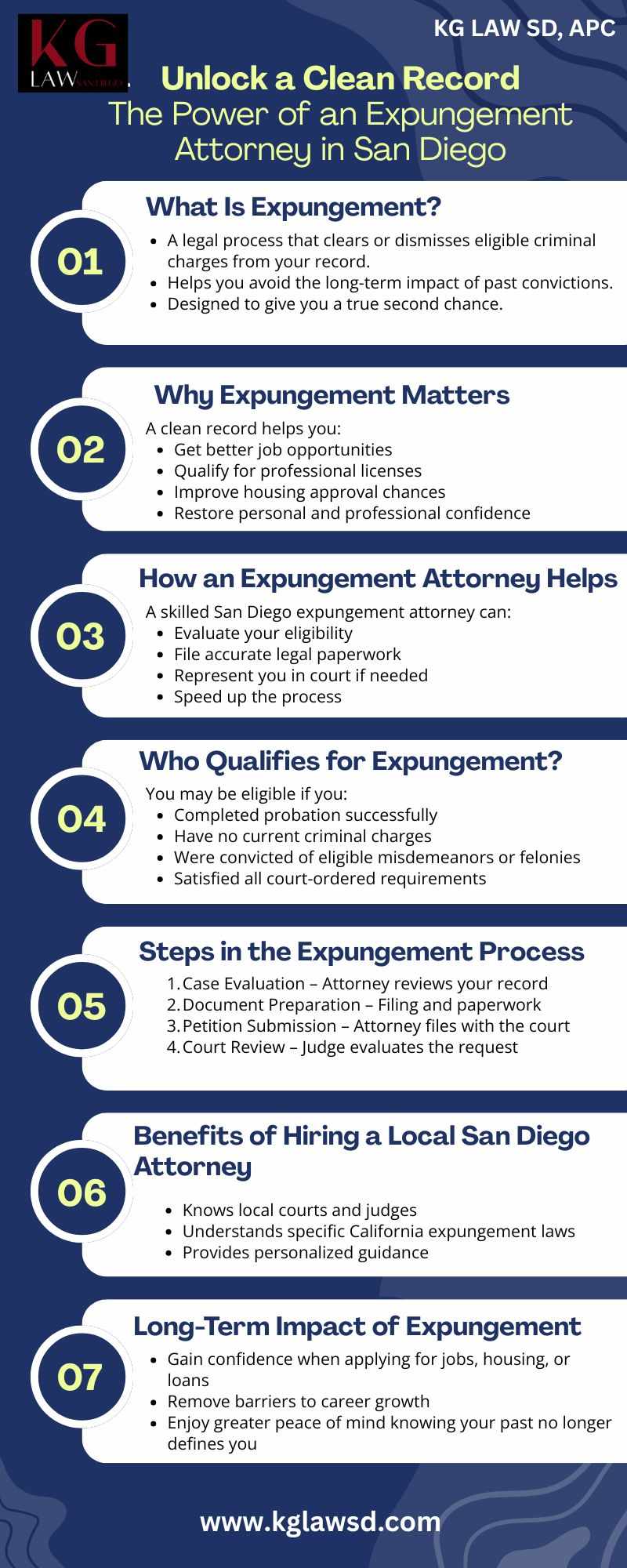 If you need help expunging your criminal record in San Diego, you can seek the expertise of a qualified expungement attorney. The expungement lawyers at KG LAW SD, APC have the experience necessary to help you navigate the entire expungement process and protect your legal rights so that you have access to all of your future opportunities.